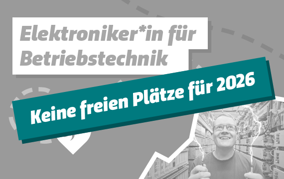 Unsere Ausbildungsplätze im Bereich der Elektroniker*innen für 2026 konnten wir bereits alle besetzen, so dass wir aktuell keine Bewerbungen entgegennehmen!